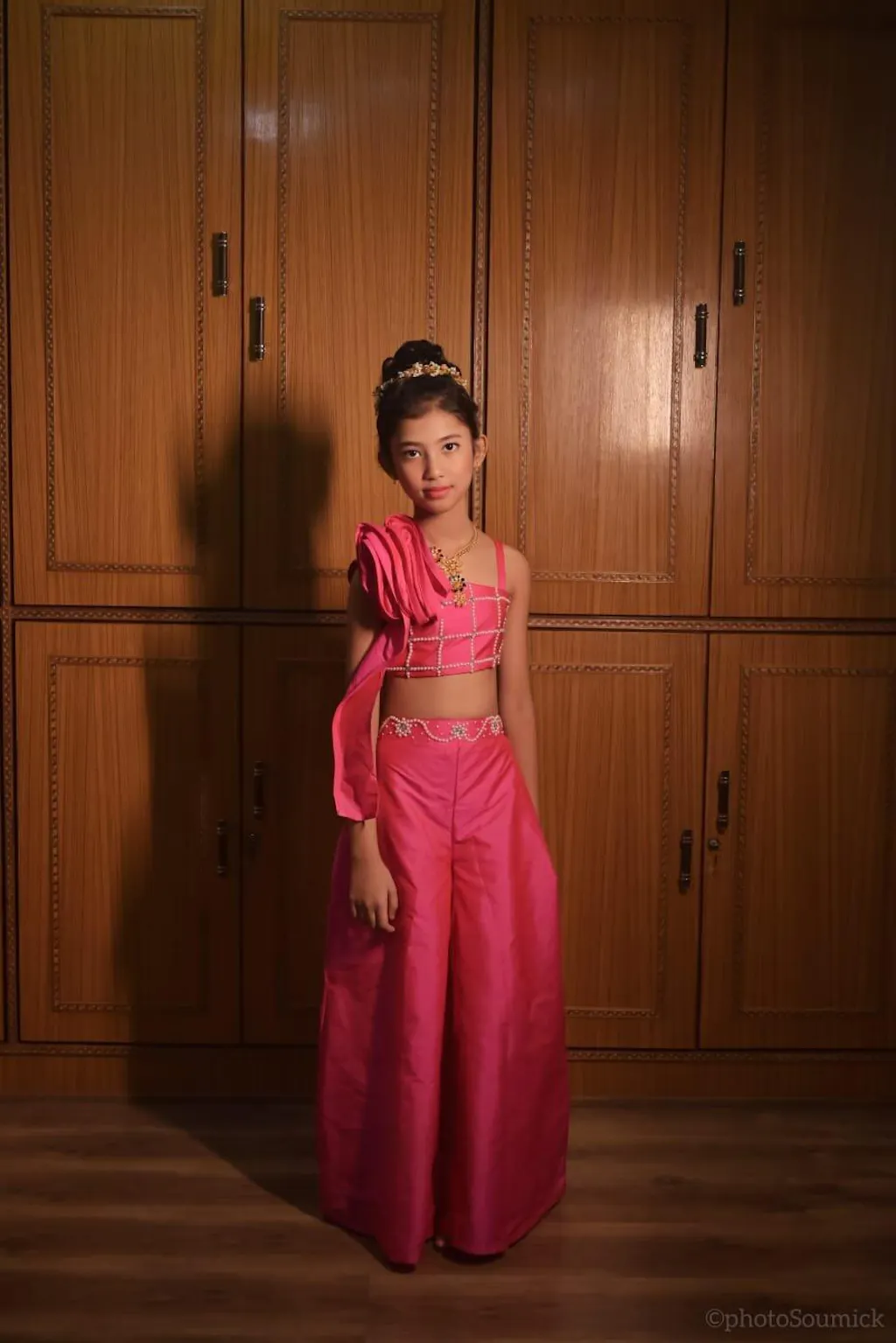 One Shoulder Swirl Enhanced Pink Top With Palazzo