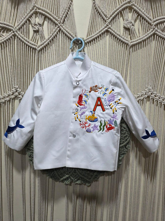 Pre Order: Jungle Theme Embroidered White Sherwani With Pant