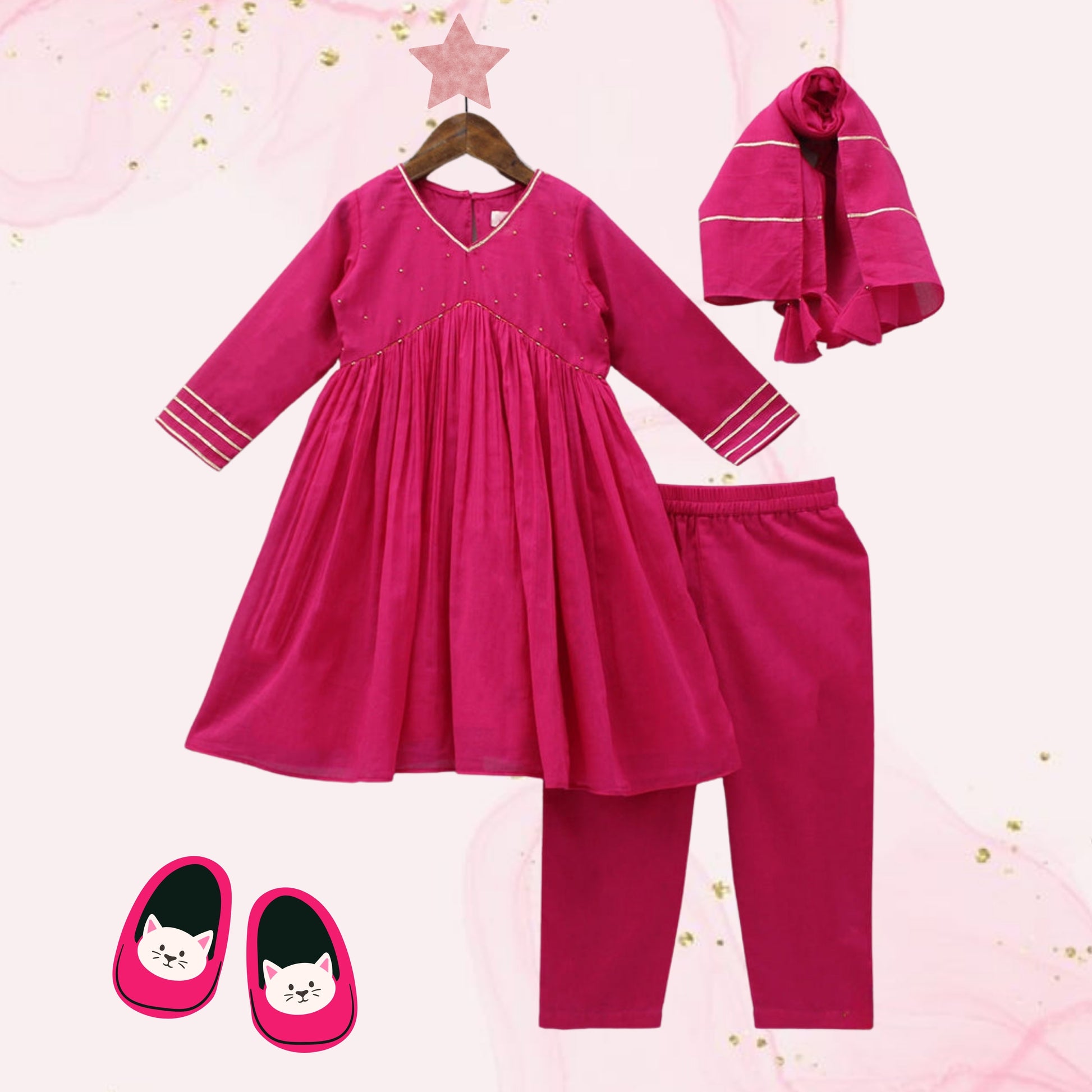 Pre Order: Beads Adorned pink Sleeveless Kurti And Pant With Dupatta