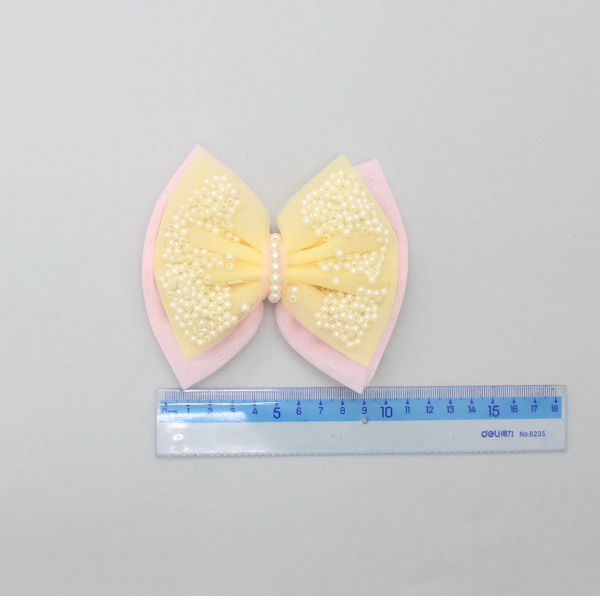 - Dual bowie net Hair Clip with pearls string enhanced at center and pearls filled inside it