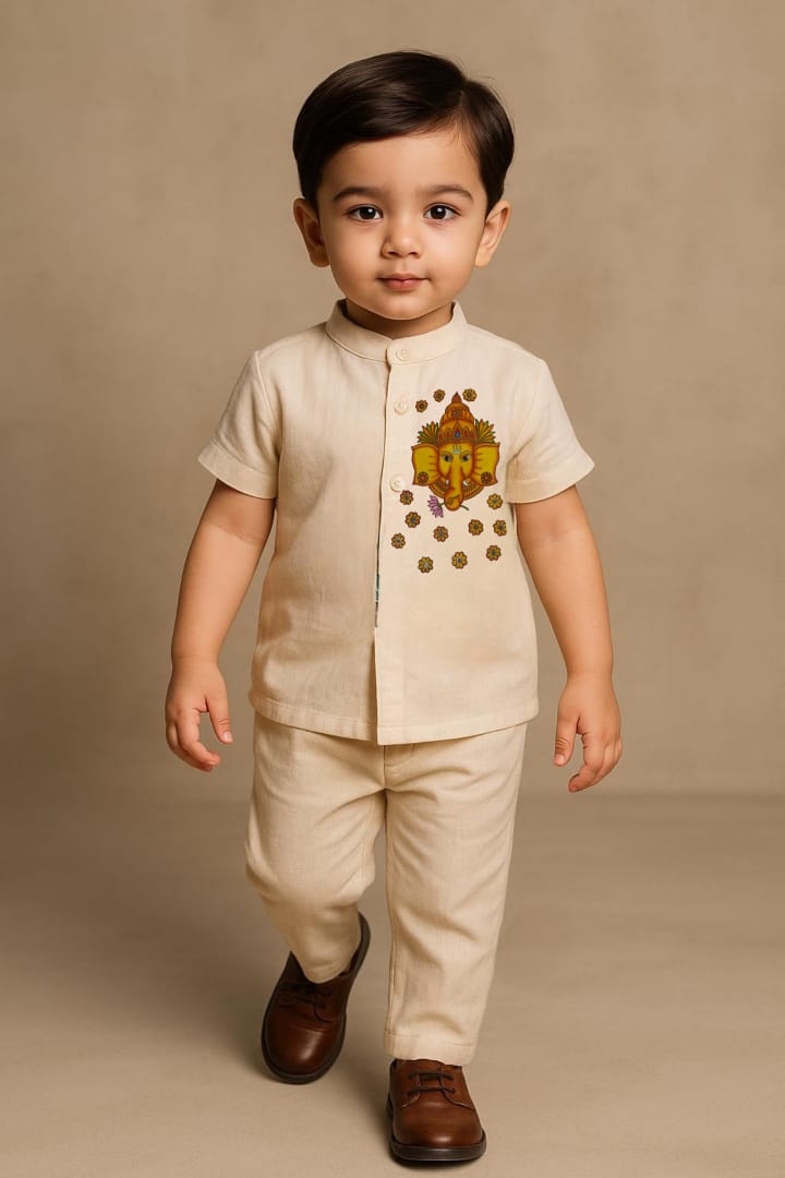 Pre Order: Off White Ganesh Hand Painted Coord Set