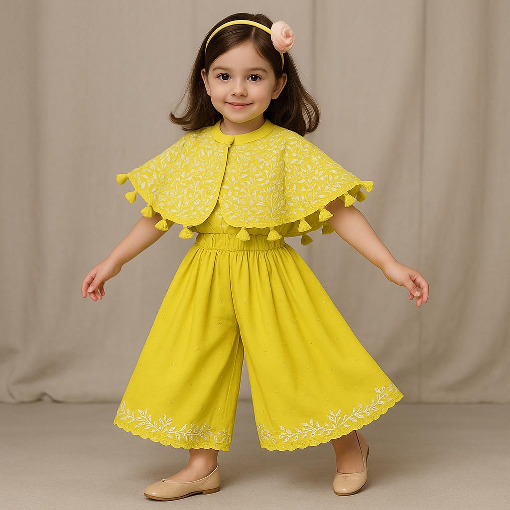 Pre Order: Green Embroidered And Embellished Cape Attached Top With Flared Palazzo