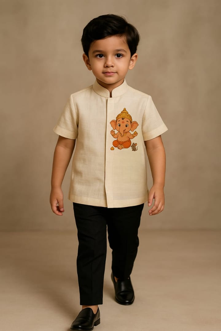 Pre Order: Mushak And Ganesh Hand Painted White Shirt