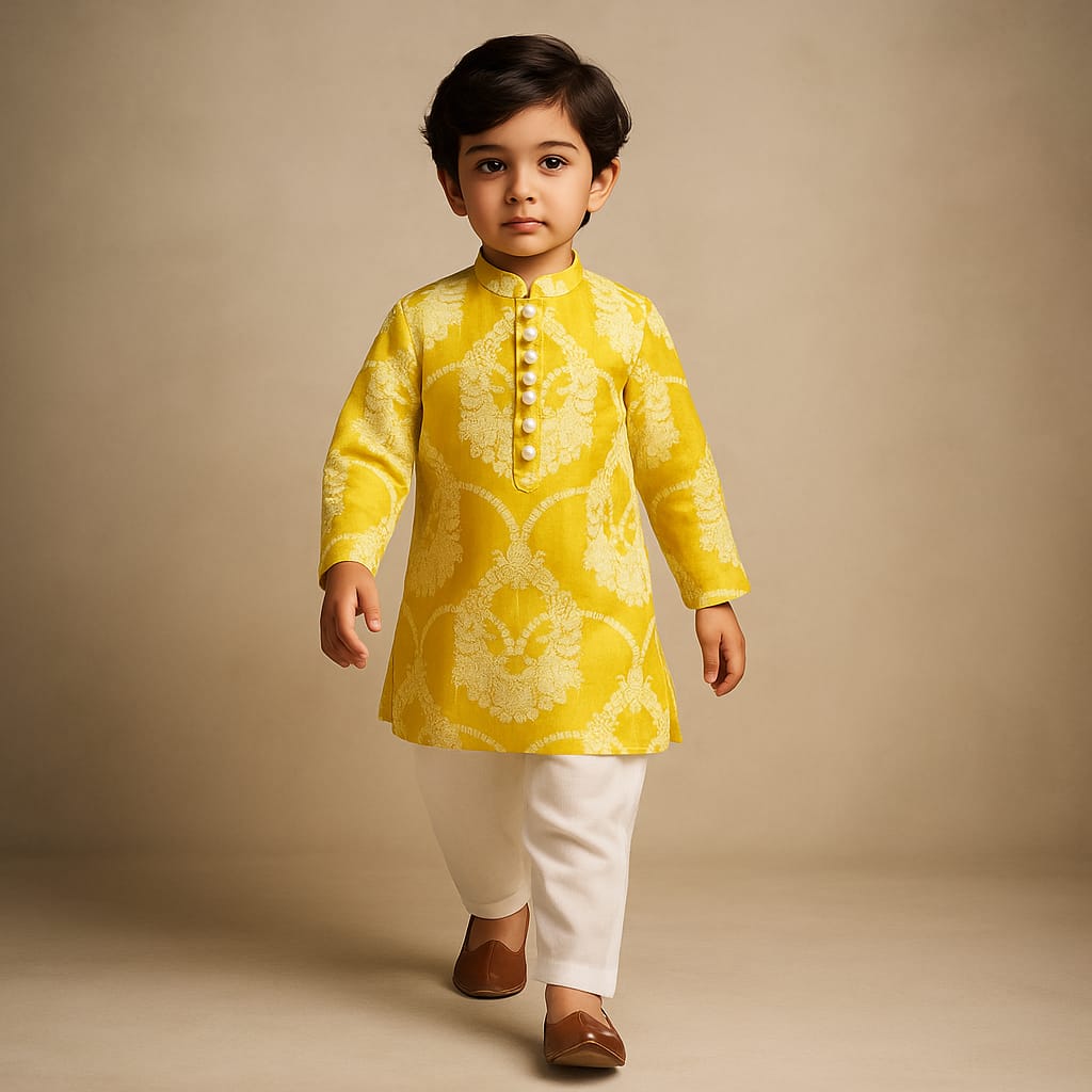 Pre Order: Mustard printed Kurta With Pyjama