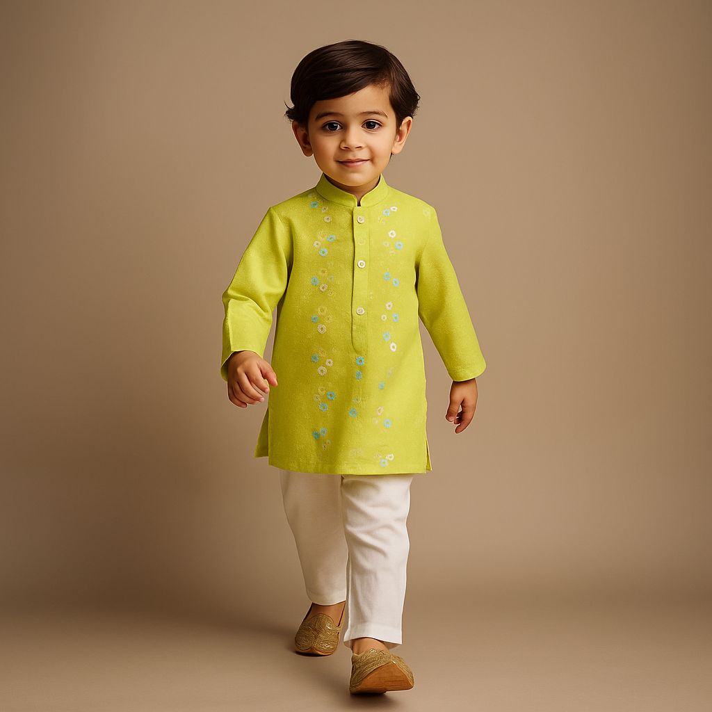 Pre Order: Green Multicolour Floral Embroidered Kurta And Pyjama