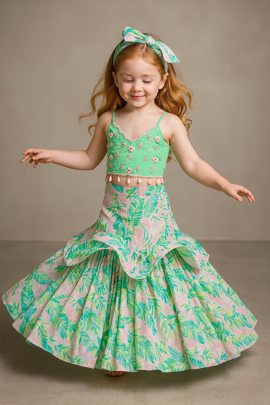 Hand-Embroidered Top With Stylish Lehenga And Matching Stole