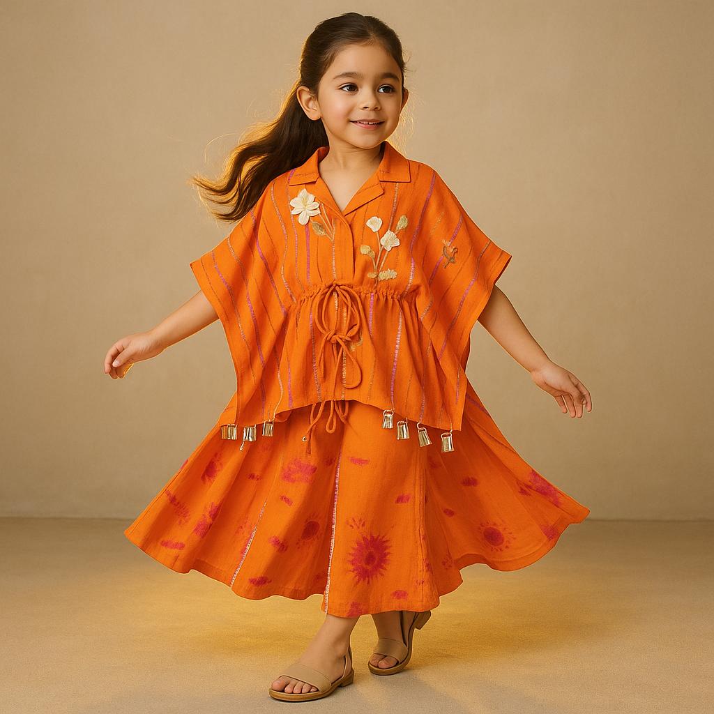 Pre Order: Printed Embellished Collar Neck Kaftan With Crop Top And Palazzo