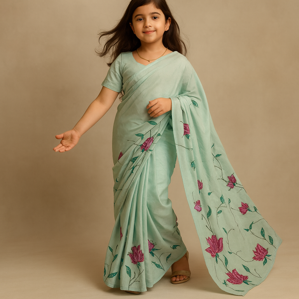 Pre Order: Mint Cotton Floral Saree