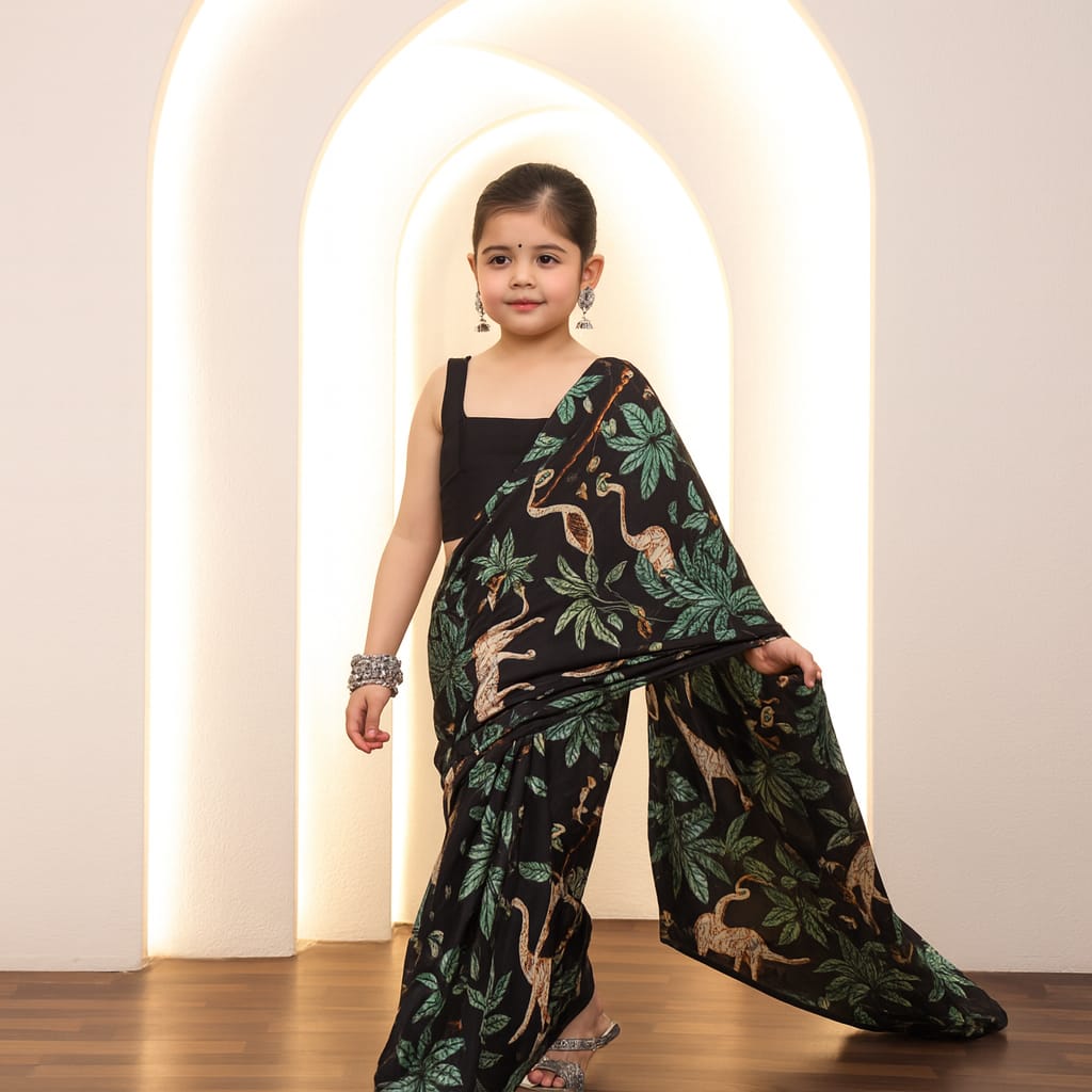 Pre Order: Black Jungle Cotton Saree